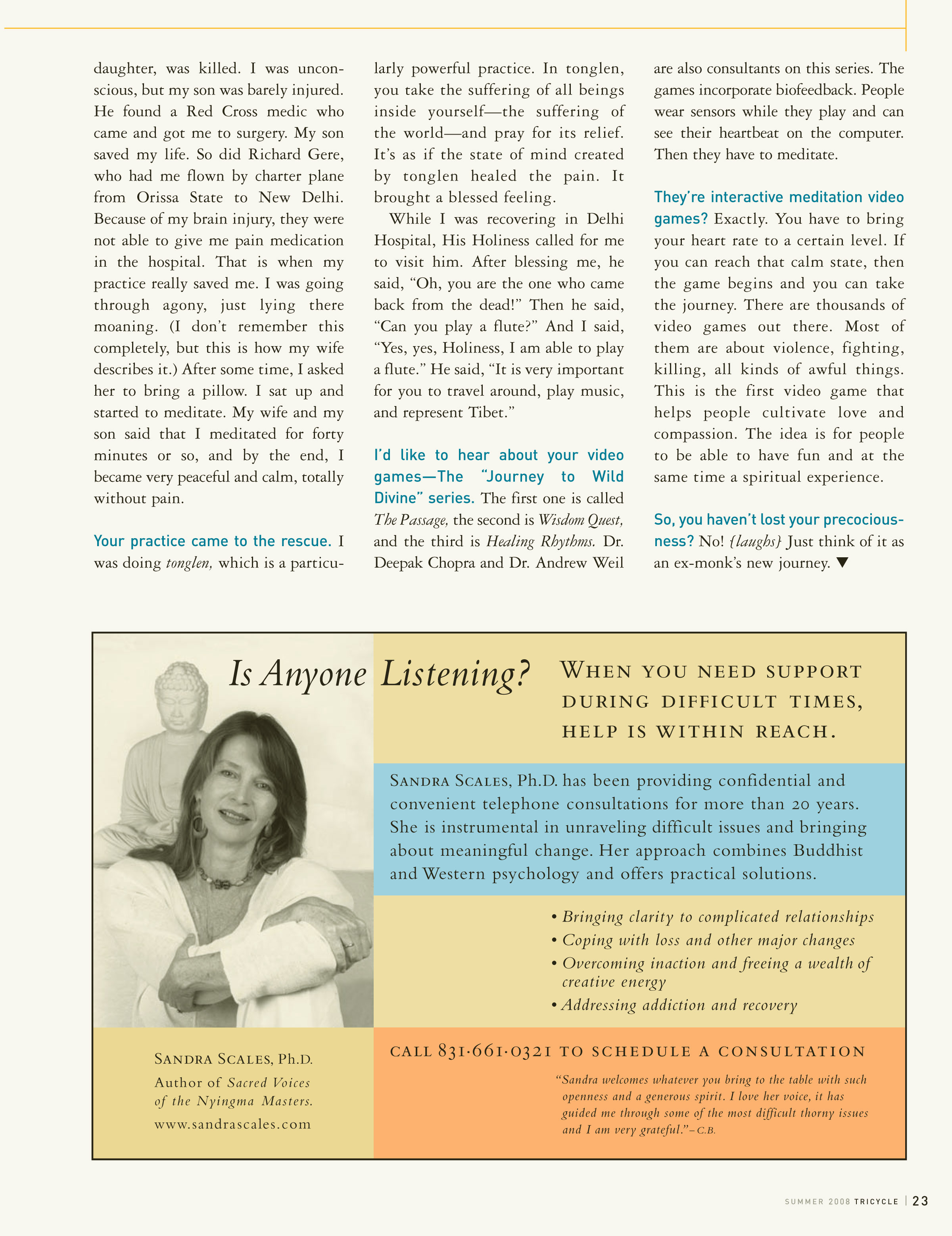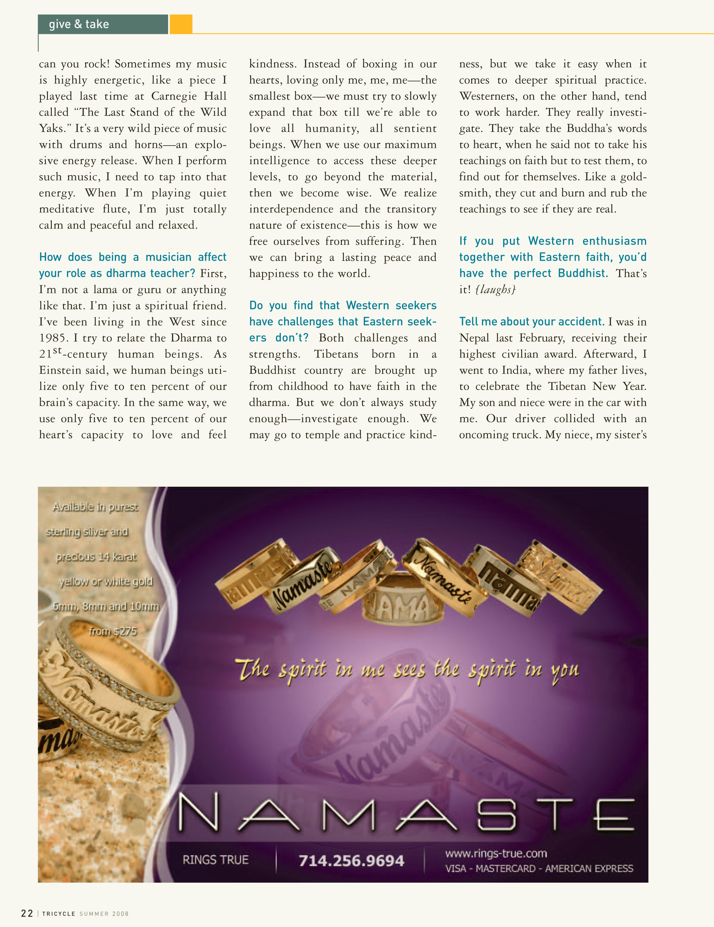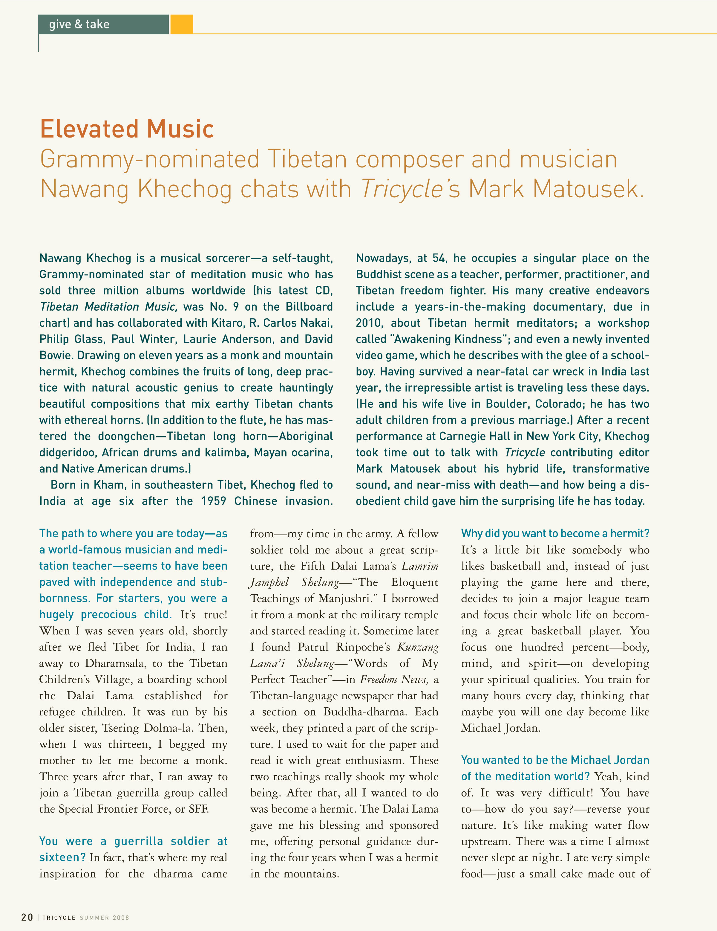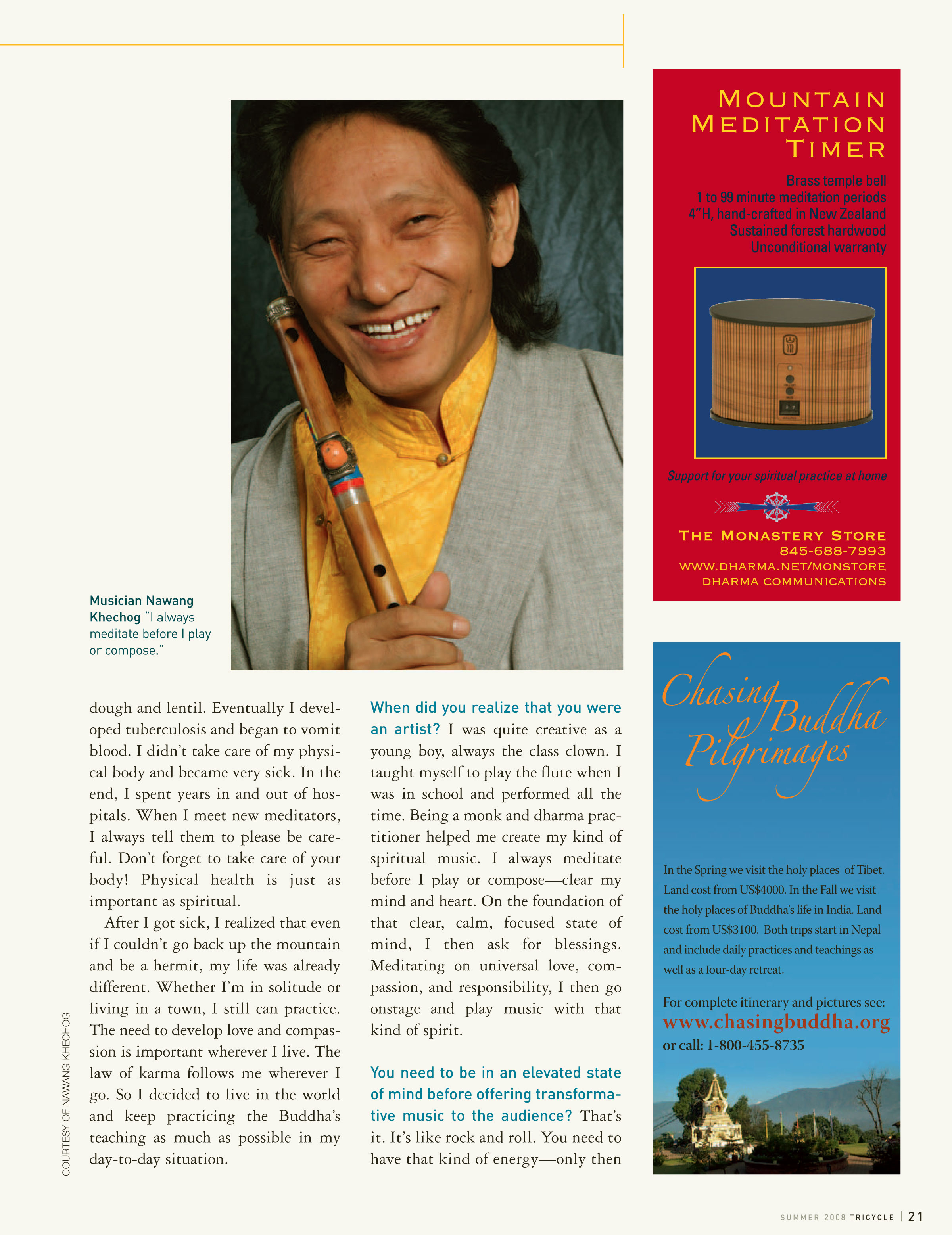 SoundsTrue has featured full page add in the new issue Mandala, Shambala Sun, and Tricycle editions for summer 2008, and Tricycle has written extensive article on Nawang in the June/July 2008.