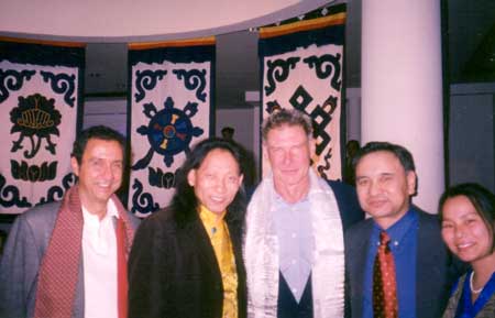 with Harrison Ford, Rinchen Darlo-la, and friends