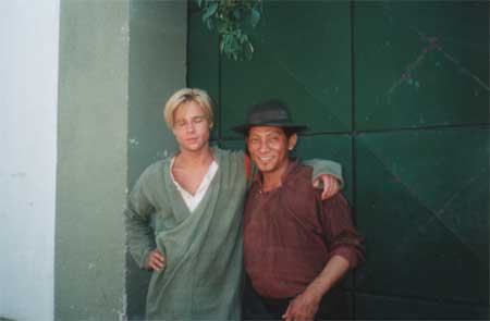 with Brad Pitt on set of Seven Years in Tibet film